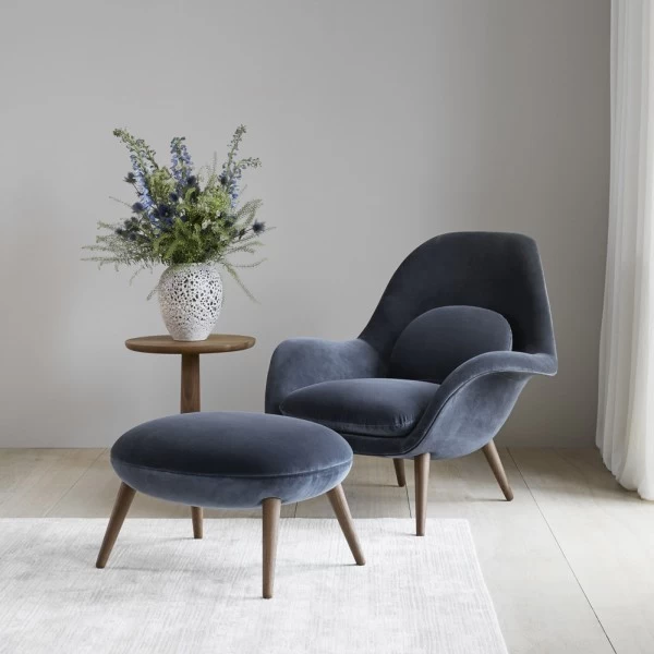 Der Swoon Lounge Chair von Fredericia im Retro-Style der 1950er Jahre ist ein Entwurf der dänischen Designgruppe Space Copenhagen aus dem Jahr 2016. Trotz seiner Formgebung – die an das Design der 1940er und 50er Jahre erinnert – fand der sehr bequeme Sessel bei der Markteinführung sehr viel Beachtung in der Fachwelt und der Presse und entwickelte sich für die dänische Möbelmanufaktur zum Verkaufsschlager. 2018 wurde der Swoon Chair um den passenden Fußhocker (Ottoman) ergänzt, 2019 folgte bei Fredericia eine kleinere Variante des erfolgreichen Sessels als Swoon Lounge Petit.