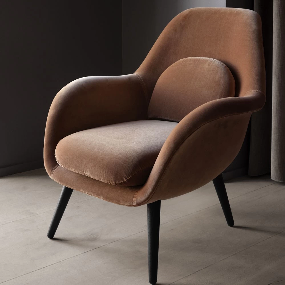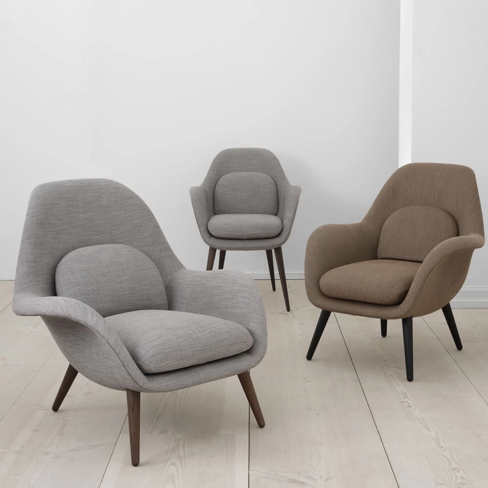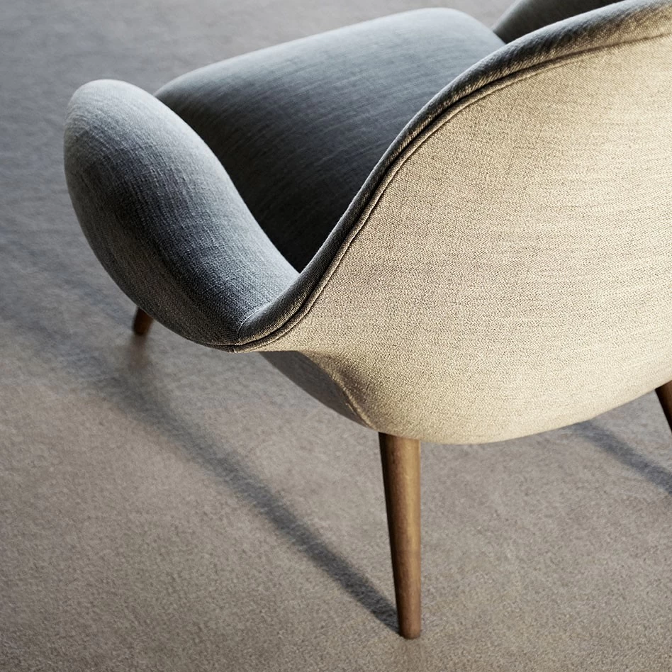 Nach dem Erfolg des Retrosessels Swoon Lounge Chair ergänzte Fredericia 2019 den neuen Klassiker um den passenden Stuhl Swoon Chair sowie den kleineren Sessel Swoon Lounge Petit (siehe auch letzte Abbildung der Kollektion). Denn der Entwurf der dänischen Designgruppe Space Copenhagen aus dem Jahr 2016 entwickelte sich zu einem Erfolgsschlager. Ebenso wie der Swoon Lounge Chair ist der kleinere, kompaktere Sessel in zahlreichen Stoff- und Ledervarianten erhältlich, daher sind die hier angebotene Versionen mit Hallingdal-Stoff oder dem samtartigen Harald-Stoff von Kvadrat exemplarisch zu verstehen. Gerne unterbreiten wir Ihnen ein Angebot für Ihre gewünschte individuelle Version.