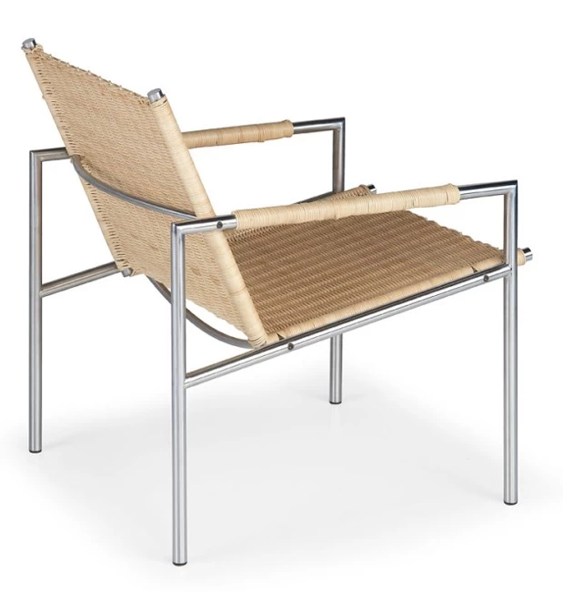 Der reduzierte Armlehnsessel SZ01 mit einem Sitz aus Peddigrohr wurde im Jahr 1960 von Martin Visser für Spectrum entworfen. Seit Ende der 1990er Jahre haben alle von Martin Visser entworfenen Sessel andere Sitzhöhen im Vergleich zum Originalentwurf. Denn die Menschheit ist heute größer ist als vor ca. 50 Jahren. Deshalb wurde die alte Sitzhöhe von 38 cm auf 41 cm angepasst.