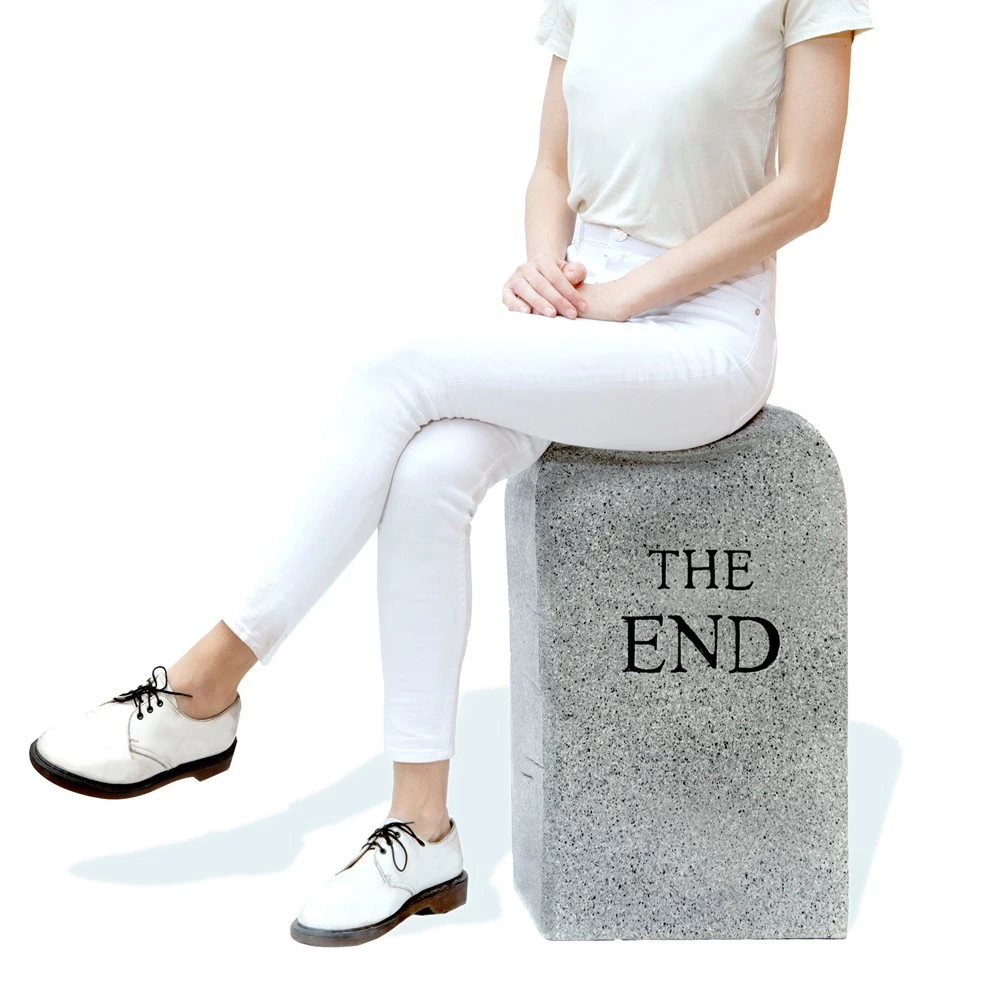 Der Hocker The End ist eine bitterböse Umsetzung von Toiletpaper, dem gemeinsamen Projekt des Künstlers Maurizio Cattelan und dem Fotografen Pierpaolo Ferrari. Der ironische Grabstein soll das „Ende“ der Marke Gufram erklären und gleichzeitig einen Neuanfang suggerieren. Sein Äußeres ist ein Grabstein, ein Bild, welches Maurizio Cattelan auch für seine eigene Autobiographie wählte. Die Herstellung erfolgt dabei mit Guflac, einer von Gufram patentierten Spezialfarbe, und wodurch das gefakte Granit-Finish realisiert werden konnte. Aus diesem Grund unterscheidet sich jeder Grabstein von einem anderen. The End ist das einzige Beerdigungselement, das Teil internationaler Design- und Kunstsammlungen ist und das man nebenbei als Hocker nutzen kann.