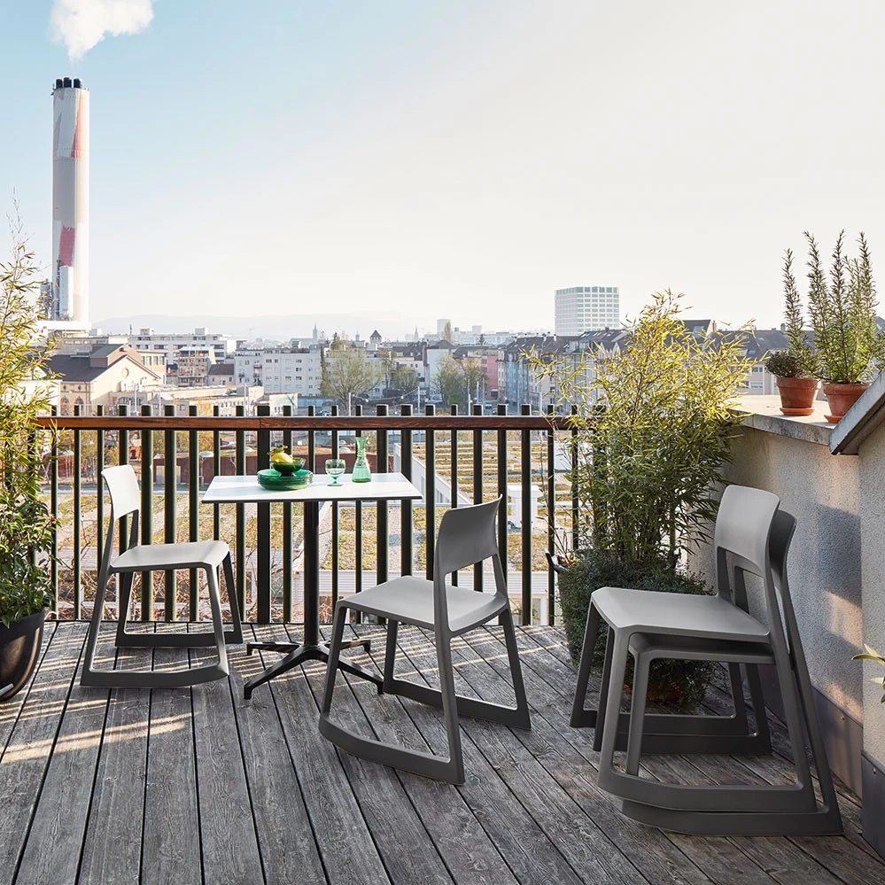 Mit dem Entwurf des Stuhls Tip Ton definierte das britische Designerduo Barber Osgerby 2011 eine neue Stuhltypologie: einen Stuhl zum Kippeln. Was Generationen von Schülern immer verboten wurde, ist seitdem erlaubt. Der Name Tip Ton deutet schon die zweifache Sitzerfahrung an – aus der Normalposition lässt sich Tip Ton nach vorne kippen, wo der Stuhl um einige Grad geneigt stehen bleibt.