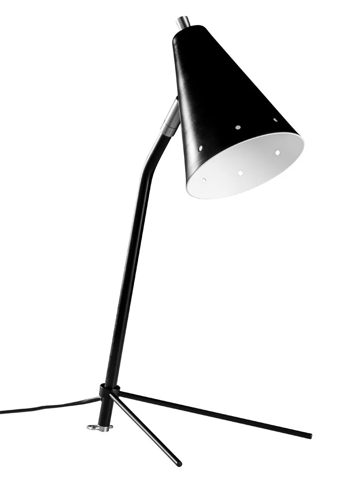 Die Tischleuchte 1801 mit dem Spitznamen Die Marionette ist ursprünglich ein Entwurf von J.J.M. Hoogervorst aus dem Jahr 1957 für Anvia. Die Reedition aus dem Jahr 2019 beinhaltet dabei Designkomponenten der früheren Anvia-Leuchten 625 und 634. Dabei kann die Leuchte kann an dem V-förmigen Fuß nicht nur individuell eingestellt werden, durch einen dreieckigen Haken am Fuß ist sie ebenso als Wandleuchte verwendbar. Erhältlich ist der Lichtklassiker wahlweise mit schwarzen oder cremeweißen Leuchtenschirm. Weitere Anvia Leuchten gerne auf Anfrage.