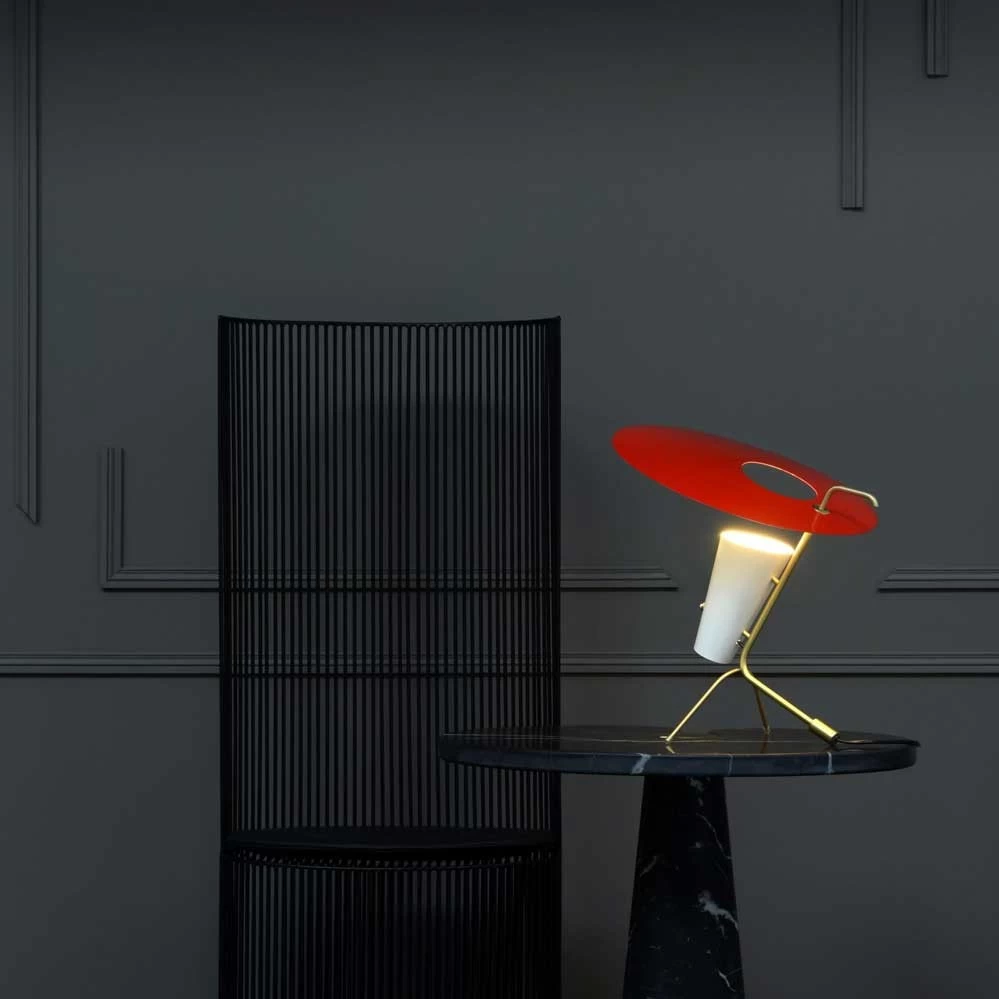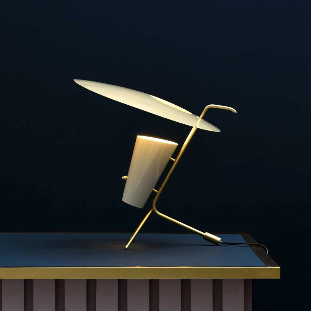 Französische Eleganz strahlt die Tischleuchte G24 von Pierre Guariche aus und besticht durch die indirekte Beleuchtung. Der Entwurf aus dem Jahr 1953 wird heute von Sammode in Frankreich gefertigt und ist in vier Farben erhältlich.