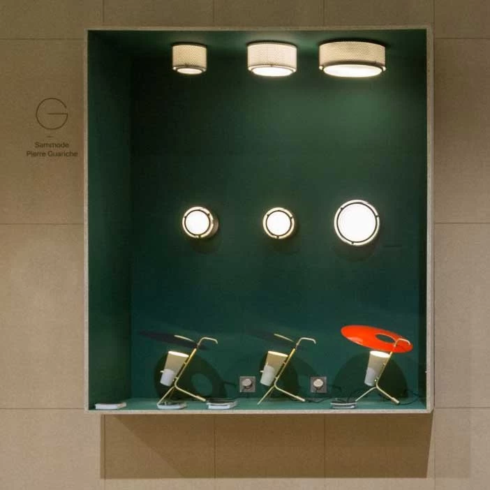 Der französische Innenarchitekt und Designer Pierre Guariche zählt zu den innovativsten Möbelgestaltern der französischen Mid Century Designs. Als Befürworter der Serienfertigung entwarf Guariche erschwingliche Objekte für die breite Bevölkerung, ohne bei der Designqualität Kompromisse einzugehen. Auch was die Verwendung neuer Materialien oder Fertigungstechniken angeht, zählte Guariche zu den Pionieren seiner Zeit. Darüber hinaus gestaltete er als Innenarchitekt Intérieurs für zahlreiche Bauten. Seine Leuchtenkollektion entstand in den 1950er Jahren und wurde 2019 von Sammode Studio in Châtillon-sur-Saône neu auflegt.