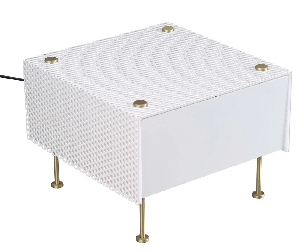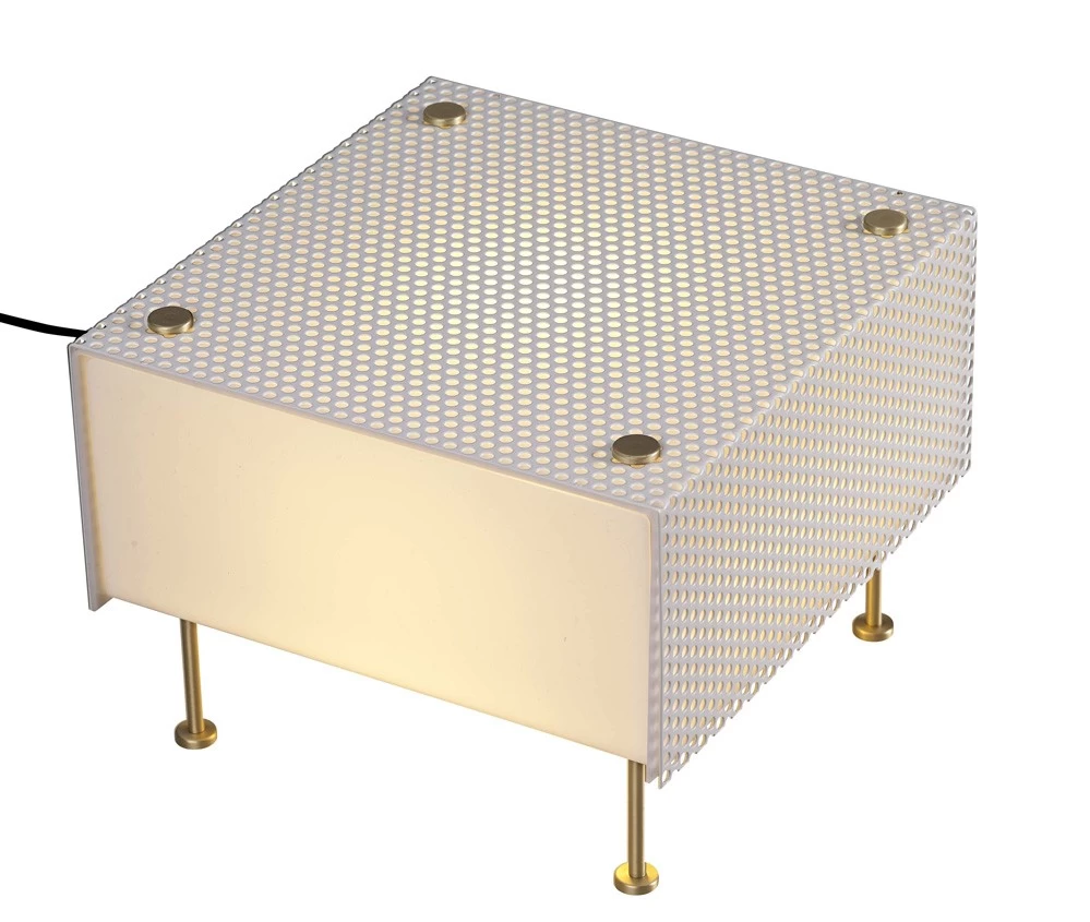 Im Gegensatz zur Tischleuchte G60 mit einer Acrylglashaube verfügt die Tischleuchte G61 über eine perforierte Stahlblechhaube. Beiden Leuchten wurden von Pierre Guariche 1959 entworfen und sind in zwei Größen erhältlich: