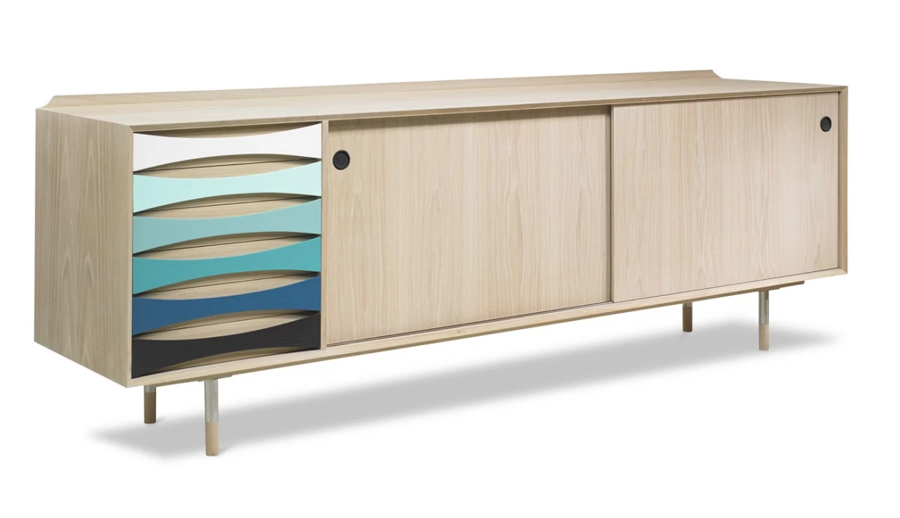 Die Anrichte entwarf der dänische Designer Arne Vodder ursprünglich 1958 für den dänischen Hersteller Sibast, der Spitzname ist von der Auszeichnung auf der Triennale in Mailand abgeleitet. Ein besonderes Detail ist die Formgebung der Schubladen, die ohne Extragriffe auskommen. Zusätzlich besticht das 220 cm lange Sideboard durch die eleganten Holzabschlüsse der Füße.