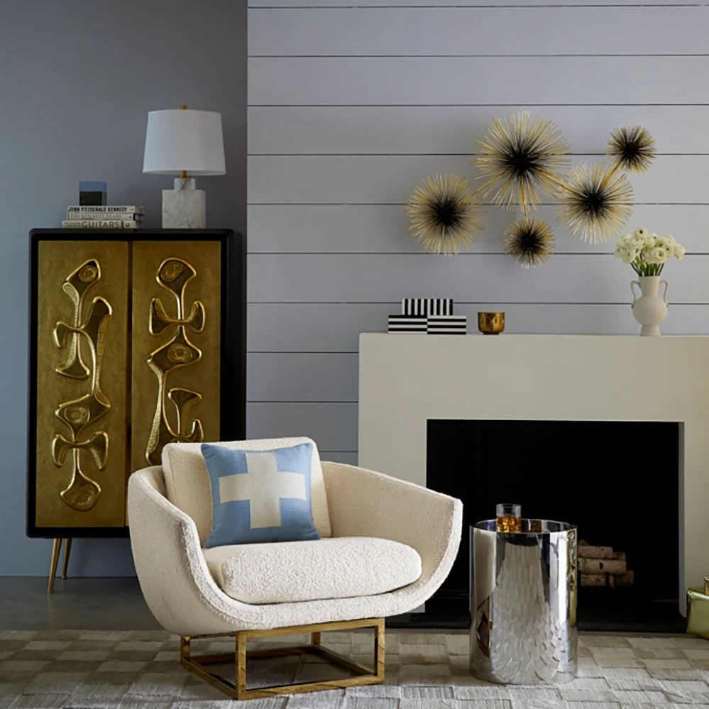 Das aus zahlreichen Strahlen bestehende fünfteilige Wandobjekt Urchin erinnert an die französischen Sonnenstrahlen-Wandskulpturen der Louis-Seize Ära – kombiniert mit der Stilsprache der 1970er Jahre.