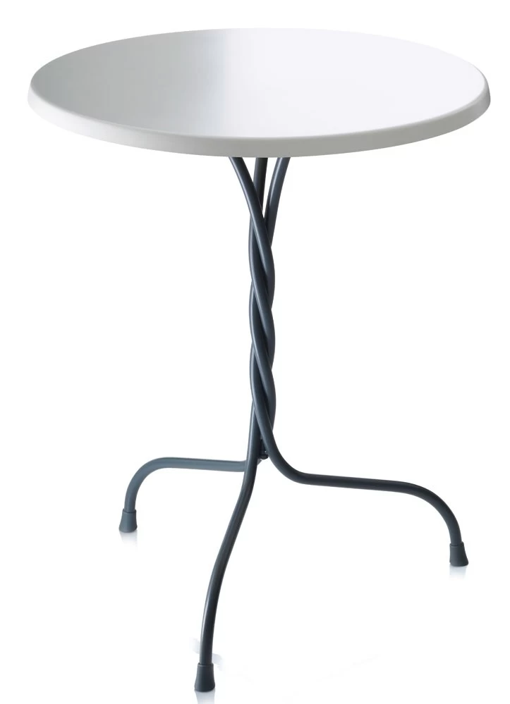 Basierend auf seinem leicht verspielten Vigna Gartenstuhl entwarf Martino Gamper den passenden Bistrotisch. Vigna bieten wir Ihnen hier als Bistrotisch mit einer Tischplatte aus dem langlebigen Werzalit Kunstharzpressholz in folgenden vier Varianten an. Weitere Tischformate erhalten Sie gerne auf Anfrage.