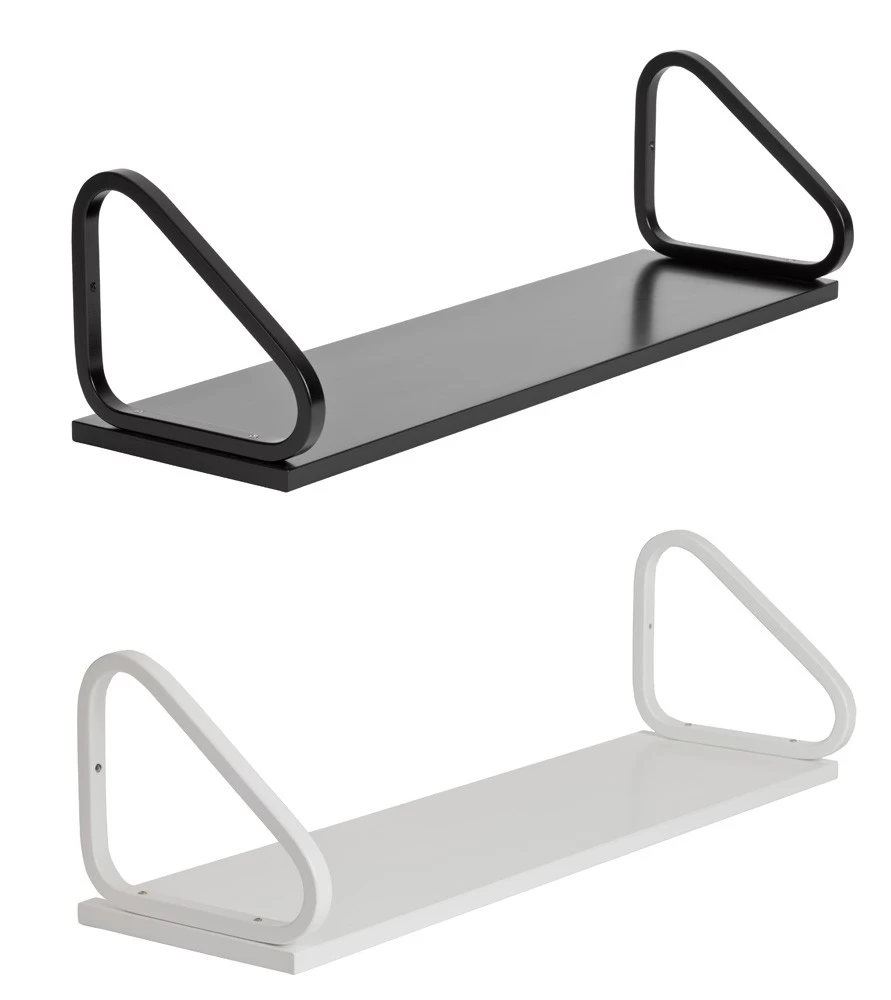 Das 90 cm breite Wandregal 112B von Artek ist in drei Farbvarianten erhältlich: Birke klar, schwarz oder weiß lackiert. Der finnische Architekt Alvar Aalto entwarf das Regal im Jahr 1936, es lässt sich als Solitär oder als Kombination mehrerer Regale einsetzen.