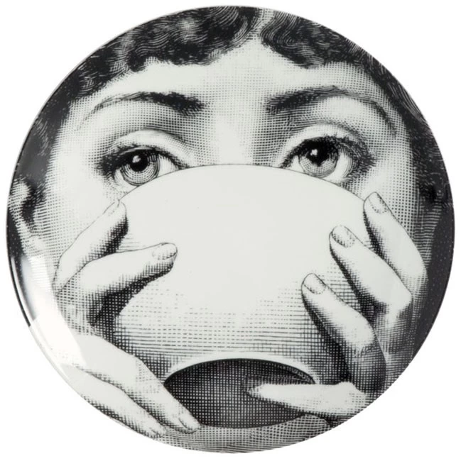Der Wandteller Frau mit Tasse zählt zu Piero Fornasettis Serie Tema & Variazioni. Basis dafür ist immer das Gesicht der italienischen Opernsängerin Lina Cavalieri, die in den 1930er Jahren als eine Schönheit galt. Piero Fornasetti spielte mit dem Motiv und schuf über 100 verschiedene Wandteller. Weitere Wandteller und Fornasetti Entwürfe gerne auf Anfrage.