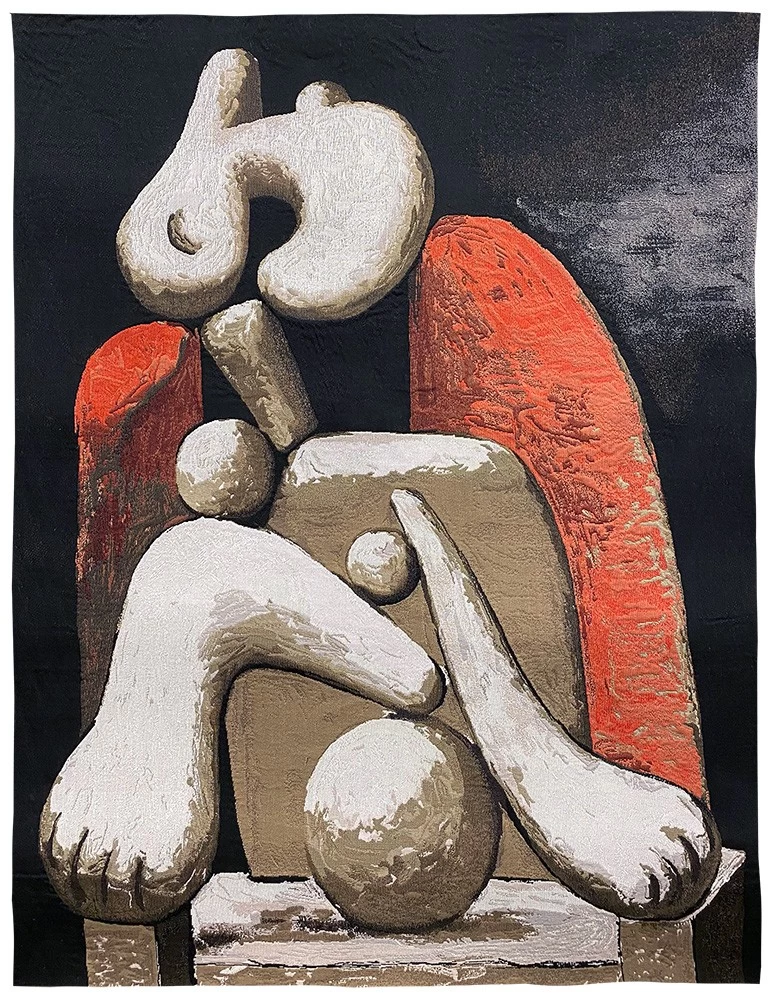Der Jules Pansu Wandteppich basiert auf dem berühmten Picassos kubistischen Werk ”Femme au Fauteuil Rouge”.