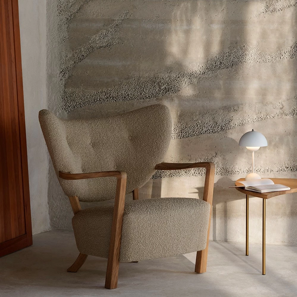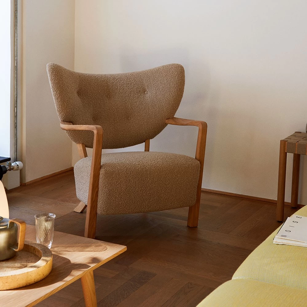 Der Wulff Chair ist ein unbekannter Entwurf einer dänischen Schreinerei aus den späten 1930er Jahren, es wurden vermutlich nur wenige Exemplare damals gefertigt. &tradition entdeckte ein altes Original Sessel in dem Auktionshaus Bruun Rasmussen in Kopenhagen und beschloss spontan, den Sessel neu zu produzieren.