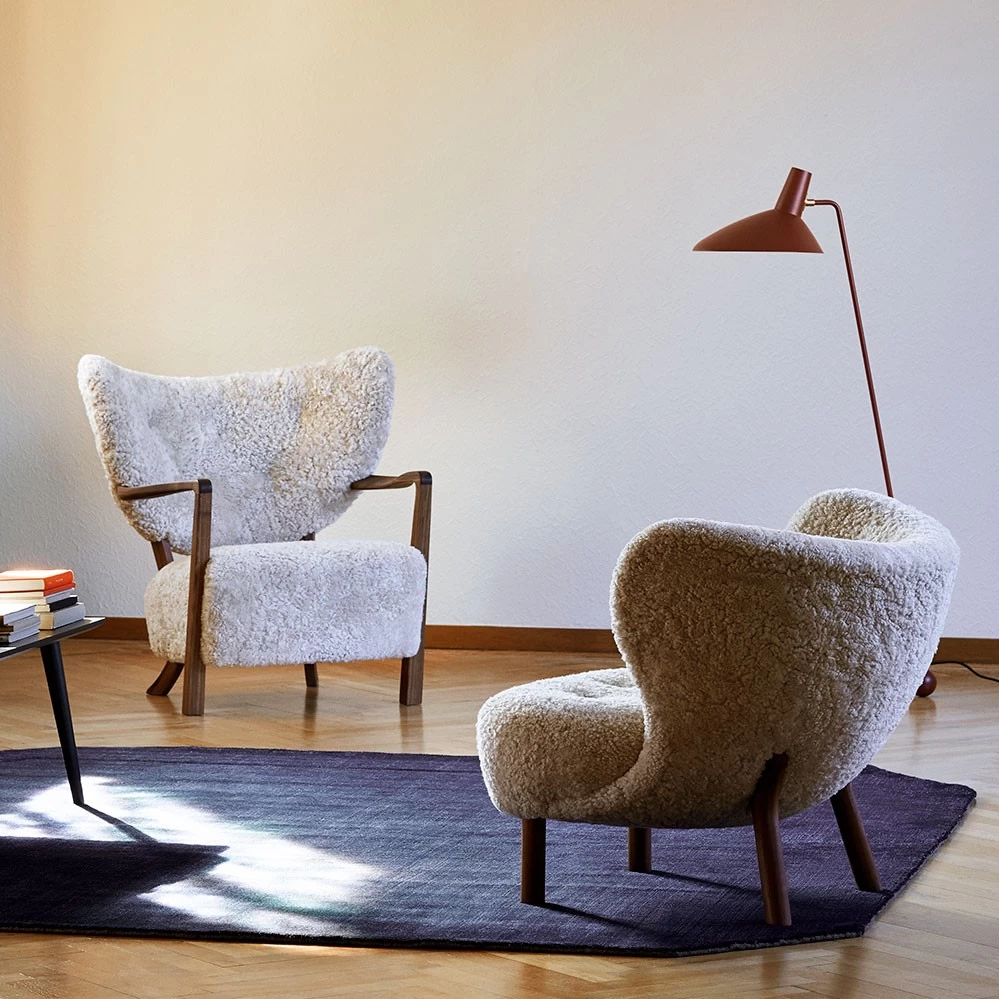 Die Stoffversion des Wulff Sessels von &tradition präsentiert sich wahlweise in dem Stoff Hallingdal 376 von Kvadrat oder dem Bouclé-Stoff Karakorum 003 von Dedar. Auf Anfrage sind weitere Stoffe für den Sessel bei &tradition (aber mit längeren Lieferzeiten) möglich.