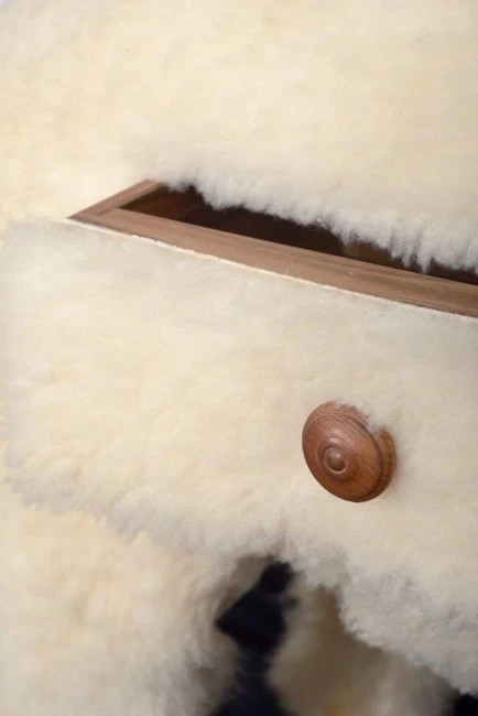 - Präperiertes Schafslamm mit integrierter Schublade und Ablage, Füsse aus Bronze