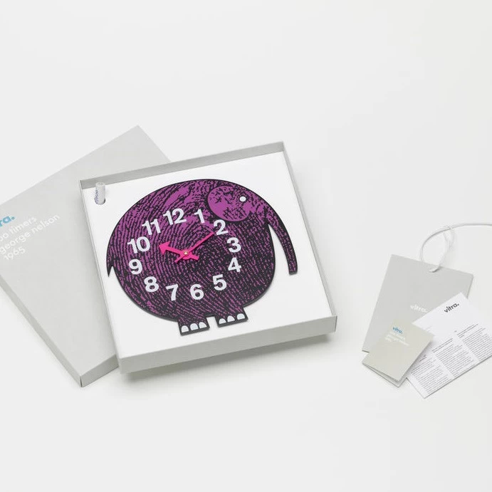 Die kinderfreundlichen Wanduhren der Zoo Timer Serie entwarfen George Nelson und sein Team im Jahr 1965. Die in kräftigen Farben gezeichneten Tiere setzen sich dabei durch ihre grafische Gestaltung stark von den skulpturalen Wall Clocks der 1950er Jahre ab. Erhältlich sind bei Markanto alle drei Zoo Timer Uhrenmodelle von Vitra: